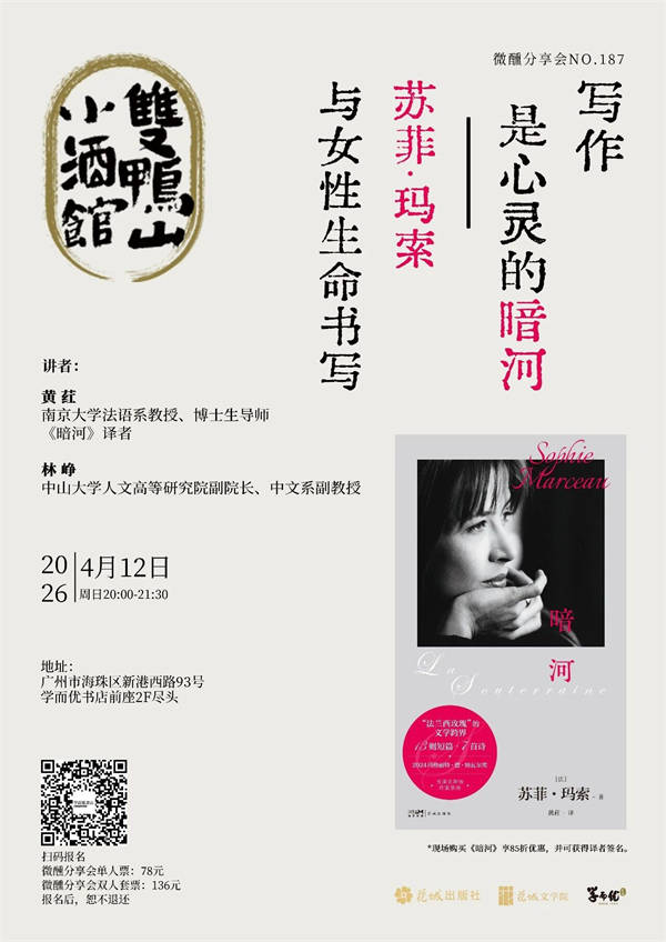 《暗河》是“法兰西玫瑰”苏菲·玛索的作品,获2024年玛格丽特·德·纳瓦尔文学奖。13则短篇,7首诗歌,如地下暗河,串联起女孩、恋人、母亲、祖母的隐秘时刻。本次活动将分享《暗河》背后的故事,探讨女性生命经验如何通过文字流动为隐秘而坚韧的暗河。