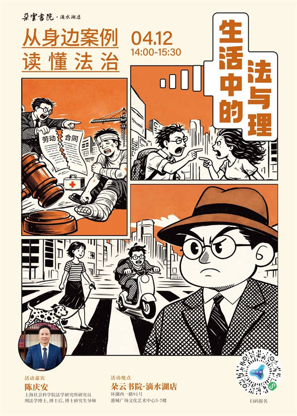 4月12日,在朵云书院·滴水湖店,上海社会科学院法学研究所研究员、博士研究生导师陈庆安,将带你打开《小案大道理》,用你听得懂的方式,讲透你用得上的法律。