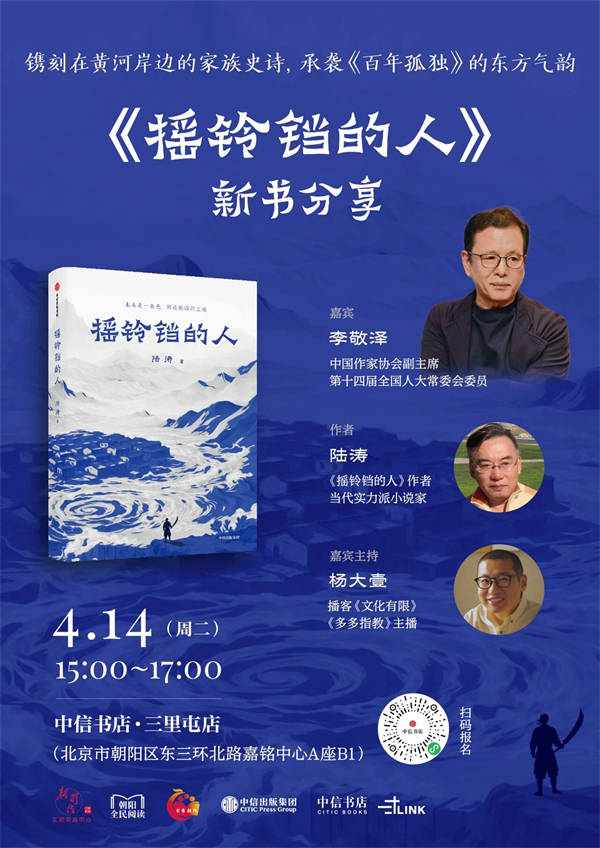 《摇铃铛的人》为我们展开了一幅西北大地的魔幻长卷。这里有真实的泥土气息,也有超乎想象的奇诡传说;有命运的残酷碾压,也有生命在绝境中迸发出的原始韧劲。4月14日下午,让我们跟随《摇铃铛的人》作者、小说家陆涛,中国作家协会副主席、第十四届全国人大常委会委员李敬泽先生,播客《文化有限》《多多指教》主播杨大壹,一起走进黄河岸边的河陇奇谭,聆听那穿越百年的铃铛声。