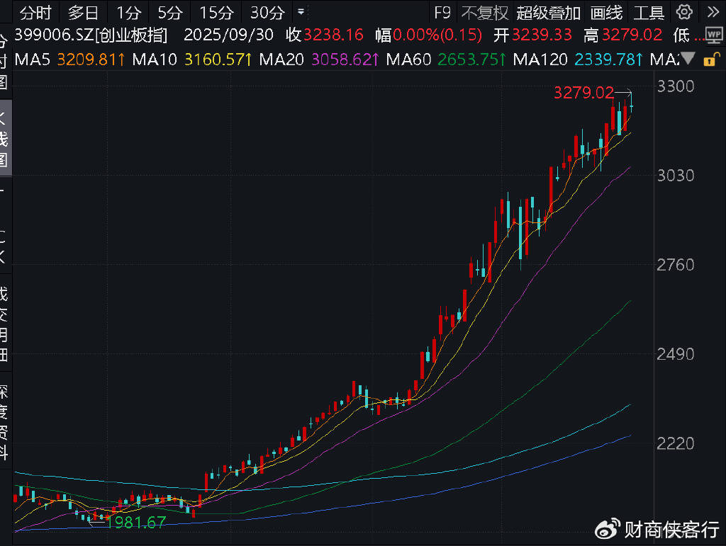 对比该指数前三季度51.2%的涨幅可以发现,创业板指上半年几乎没有怎么动,但第三季度突然启动,贡献了前三季度几乎所有涨幅!