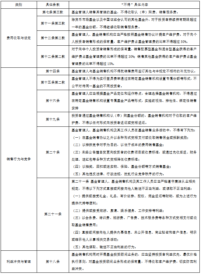 销售行为与竞争类的“不得”条款,聚焦于净化行业竞争环境,打击过往存在的“定制化费率”、“专属份额”、“歧视性销售”、“变相返佣”、“不正当利益输送”等乱象。《规定》第二十条、第二十一条更是以“负面清单”形式,明确了销售环节的多重禁止性行为,从而推动销售竞争从“费用战”“关系战”转向“服务战”。