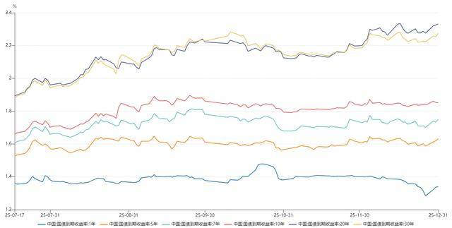 上周,主要利率债收益率震荡上行。截至12月31日收盘,1Y、5Y、7Y国债分别报收1.34%、1.63%、1.75%,分别较前一周收盘变动5.5BP、4.5BP、5BP;10Y、20Y、30Y国债分别报收1.85%、2.33%、2.28%,分别均较前一周收盘变动1BP、6BP、5BP。