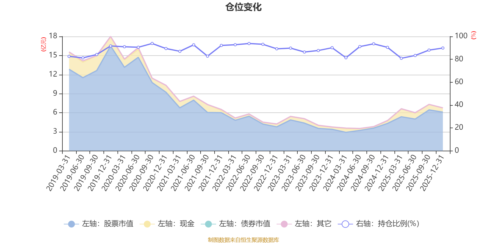 据定期报告数据统计,近三年平均股票仓位为87.73%,同类平均为88.36%。2020年三季度末基金达到93.87%的最高仓位,2025年一季度末最低,为80.91%。