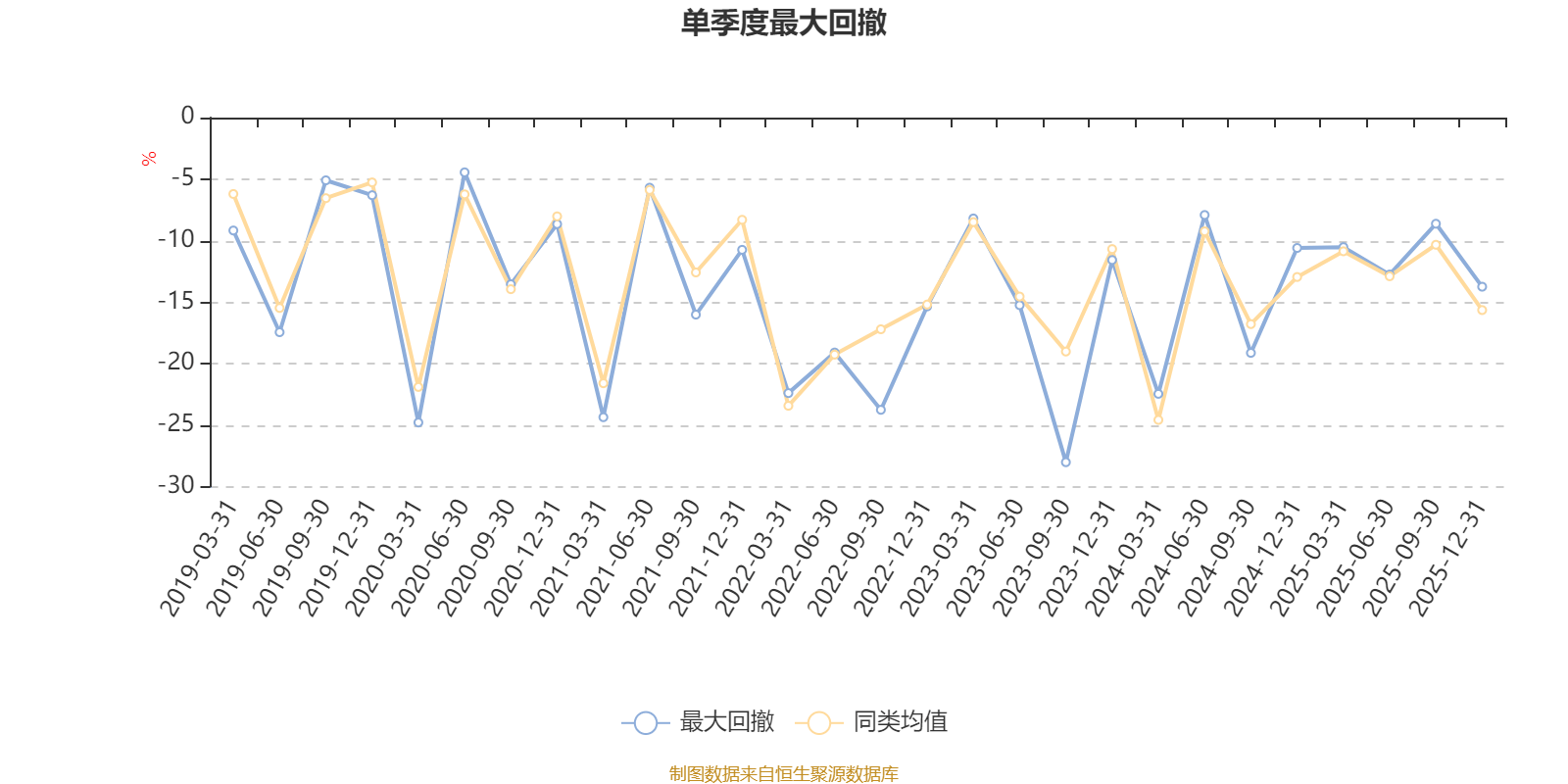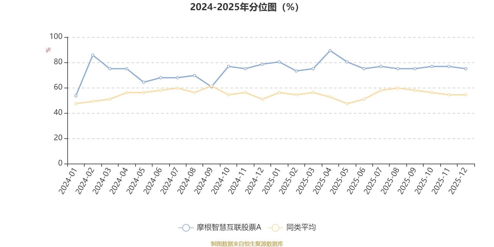 通过所选区间该基金净值增长率分位图,可以观察该基金与同类基金业绩比较情况。图为坐标原点到区间内某时点的净值增长率在同类基金中的分位数。