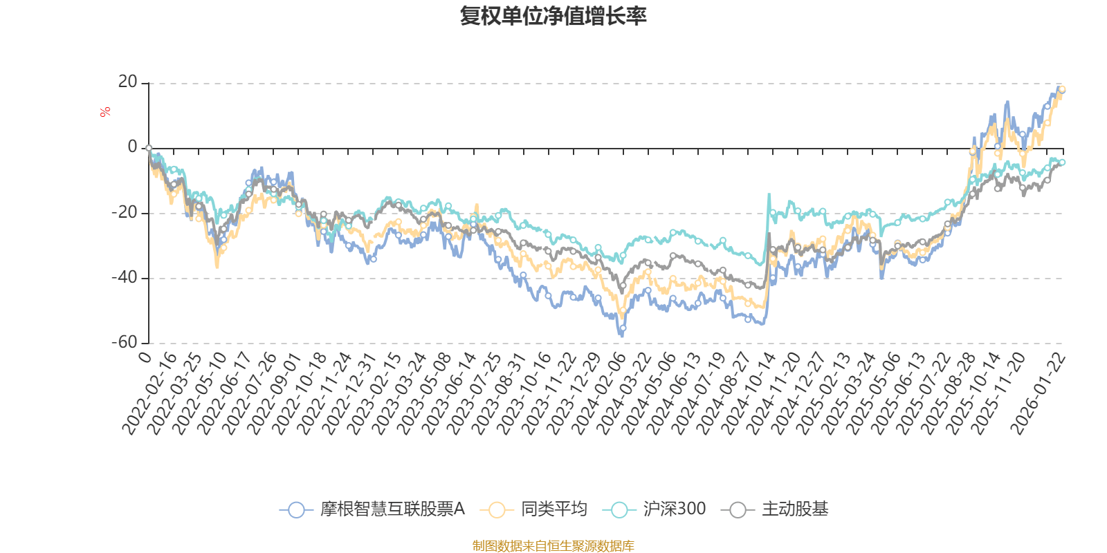 截至1月22日,摩根智慧互联股票A近三个月复权单位净值增长率为11.63%,位于同类可比基金48/63;近半年复权单位净值增长率为59.38%,位于同类可比基金31/63;近一年复权单位净值增长率为71.38%,位于同类可比基金22/62;近三年复权单位净值增长率为62.70%,位于同类可比基金28/52。