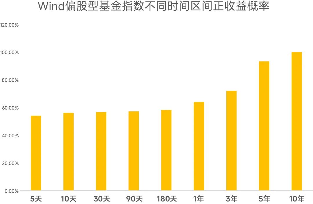 我们做过测算,持有期过短是买基金不赚钱的一大原因。随着持有时间的增长,偏股型基金取得正收益的概率有望增加。