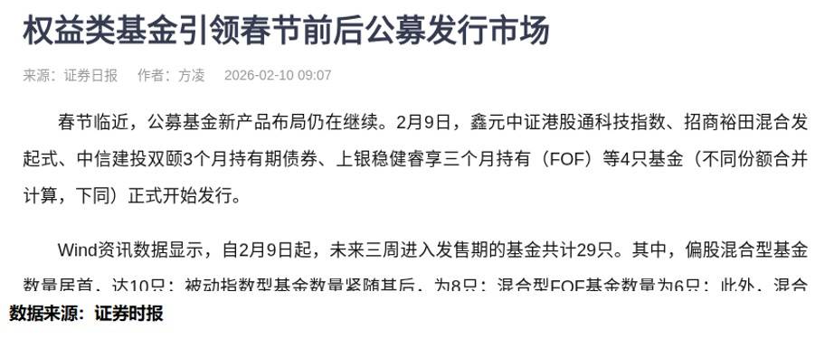 2026-02-16华体会,华体会体育官网,华体会体育,华体会体育APP下载最近我留意到,春节前后公募基金的布局节奏明显加快,从2月9日起未来三周,有29只新基金陆续进入发售期,其中21只是权益类品种,占比超七成。业内分析,当前权益市场估值具备吸引力,节后资金回流、政策预期偏暖,春季行情值得期待,但同时也指出,2月市场会保持轮动格局,板块和个股的表现分化会比较明显。
