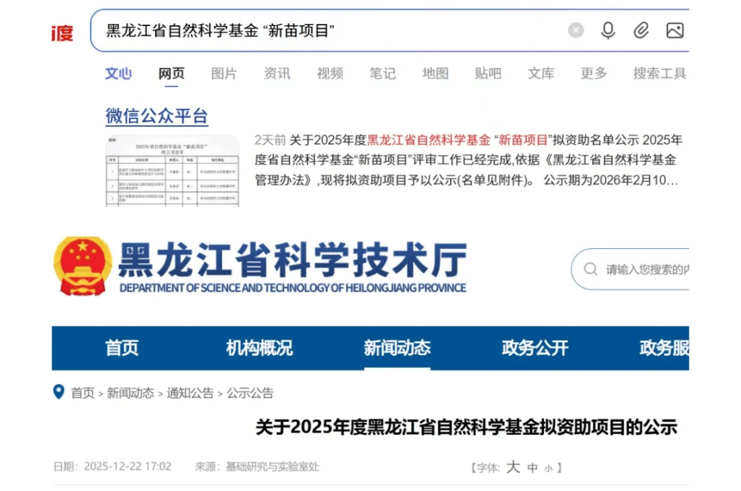 在《关于2025年度黑龙江省自然科学基金拟资助项目的公示》中,也没有搜索到相关的新苗项目。