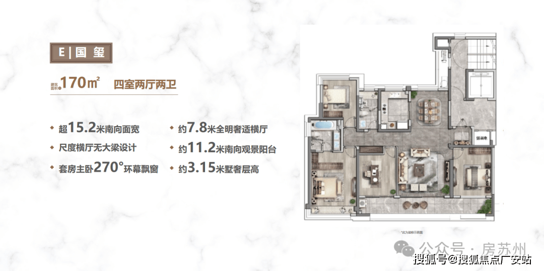 品质进阶增配举措2:中央会客厅,坐拥无遮挡观景视野,休憩、会客全能。尽展楼王风范;