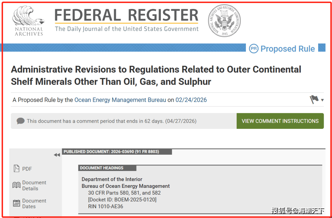 2026-02-26华体会,华体会体育官网,华体会体育,华体会体育APP下载2026年2月23日,美国海洋能源管理局(BOEM)正式宣布对美国外海大陆架(OCS)固体矿产资源的监管条例进行大规模修订。