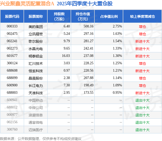 根据2025基金年报公募基金重仓股数据,重仓该股的公募基金共2家,其中持有数量最多的公募基金为兴业基金的兴业聚鑫灵活配置混合A。兴业聚鑫灵活配置混合A目前规模为1.72亿元,最新净值1.62(4月7日),较上一交易日上涨0.19%,近一年上涨9.98%。该公募基金现任基金经理为丁进。丁进在任的基金产品包括:兴业收益增强债券A,管理时间为2015年5月29日至今,期间收益率为89.79%;兴业聚华混合A,管理时间为2020年3月20日至今,期间收益率为74.54%;兴业机遇债券A,管理时间为2020年7月3日至今,期间收益率为52.5%;兴业聚福一年持有期混合A,管理时间为2023年2月21日至今,期间收益率为20.11%。