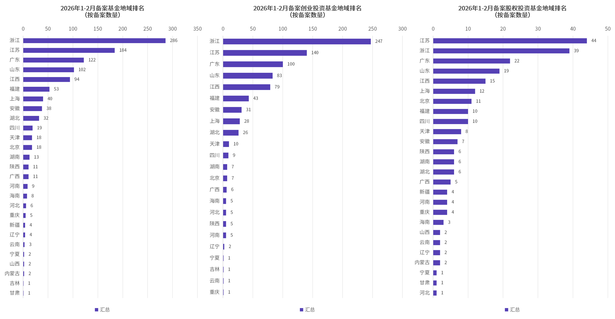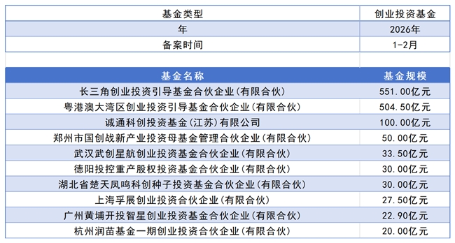 总的来看,创业投资基金备案数量在2026年1-2月头部省份延续强势,整体维持高位运行。